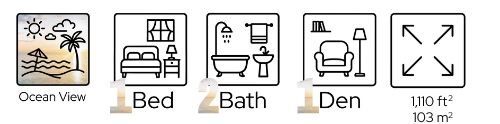 This direct oceanfront residence offers a one-bedroom layout + den, ideal for sleeping or working space. Used exclusively as a second home by owner, this condo is very well maintained. $80,000 in upgrades. The sale of the unit will also include a private, air-conditioned storage space valued at $30,000 + 1 assigned parking, besides valet. Floor-to-ceiling glass windows with azure ocean views from living room and master bedroom, Snaidero kitchen, granite countertops, top-of-the-line Miele and Sub-Zero stainless steel appliances. 5-star amenities, spa, café, gym, children play area & management on site are just a few hi-lights to mention... Walking distance to shopping, dining destinations & within close proximity to Bal Harbour & Aventura Malls, and both Miami and Fort Lauderdale Airports.